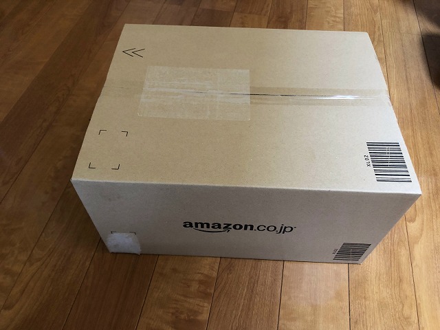 すると玄関の前にいつものamazonダンボールが置いてあるではないか!